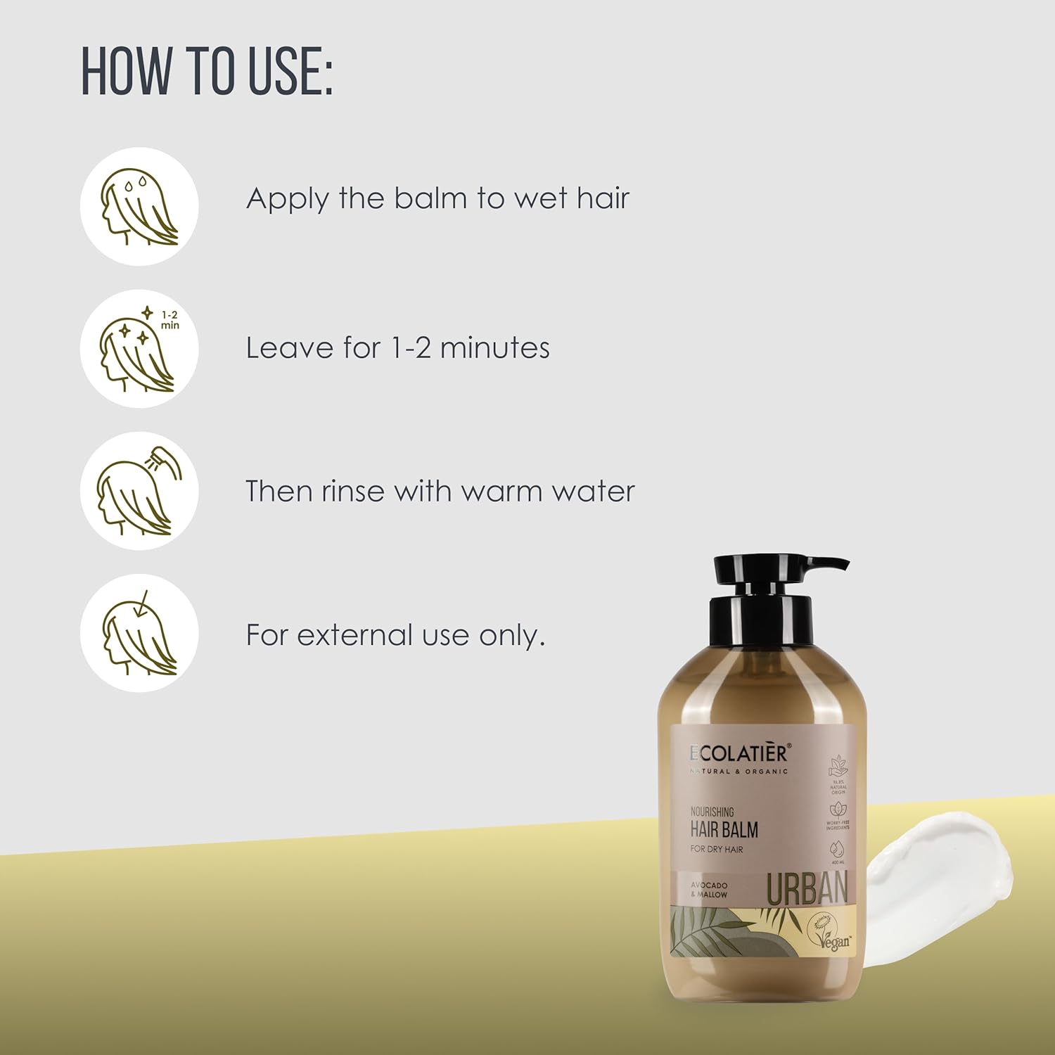Nourishing Hair Balm for Dry Hair ECOLATIER, URBAN Series - Formulated with Natural Ingredients to Provide Care, Radiant Shine and Overall Health - 13.5 Fl Oz